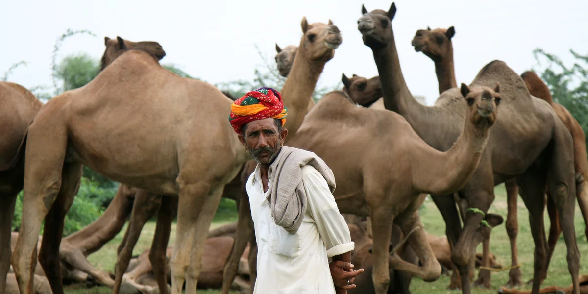 Sarwan, 40 Jahre alt, vier Kinder, lebt mit seiner Familie in einer Hütte auf einem steinigen Hügel in der Nähe der Landeshauptstadt Jaipur. Er besitzt 70 Kamele, aber, so sagt er, deren Pflege brächte ihm keinerlei Einkommen. Am meisten macht ihm zu schaffen, dass die Weidegründe immer knapper werden: „Wir treiben die Tiere zur Weide in den Wald. Es kommt vor, dass wir dabei versehentlich jemandes Ackerland überqueren. Da werden wir dann oft attackiert und vertrieben, auch mit Steinen beworfen. Unsere Wanderrouten führen uns bis in die Nachbardistrikte Alwar und Bharatpur, auch dort müssen wir mit Missgunst und Gewalt vonseiten der Dorfbewohner und der Forstbeamten rechnen. Häufig werden wir zu hohen Geldstrafen verdonnert. Wie soll ich da die Kamele und meine Kinder ernähren?“