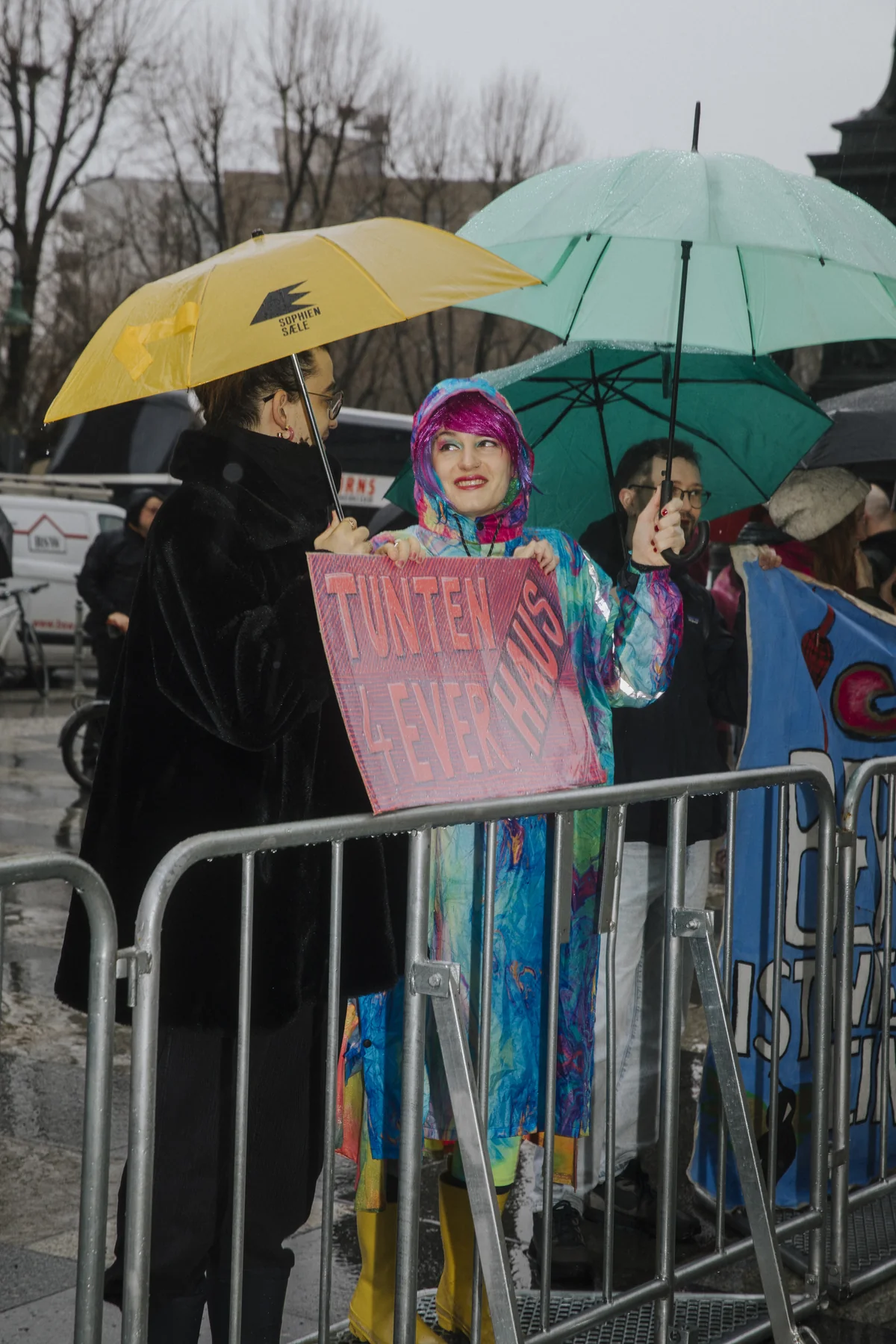 Das Tuntenhaus ist vor allem für seine legendären Hoffeste bekannt. Aber darüber hinaus hätten die Leute „lange nichts gemacht“ und nur in ihrer „Bubble“ gelebt, kritisiert eine Frau. Doch heute wird gefeiert und demonstriert. „Das Tuntenhaus bedeutet für mich: Schutzraum für queere Menschen, alternative Lebensform, Feiern unter sicheren Verhältnissen, also sicher vor heteronormativer Anmache“, sagt Bine. „Berlin täte gut daran, sich genau diese letzten Freiräume von queerem Leben und Subkultur zu erhalten.“
