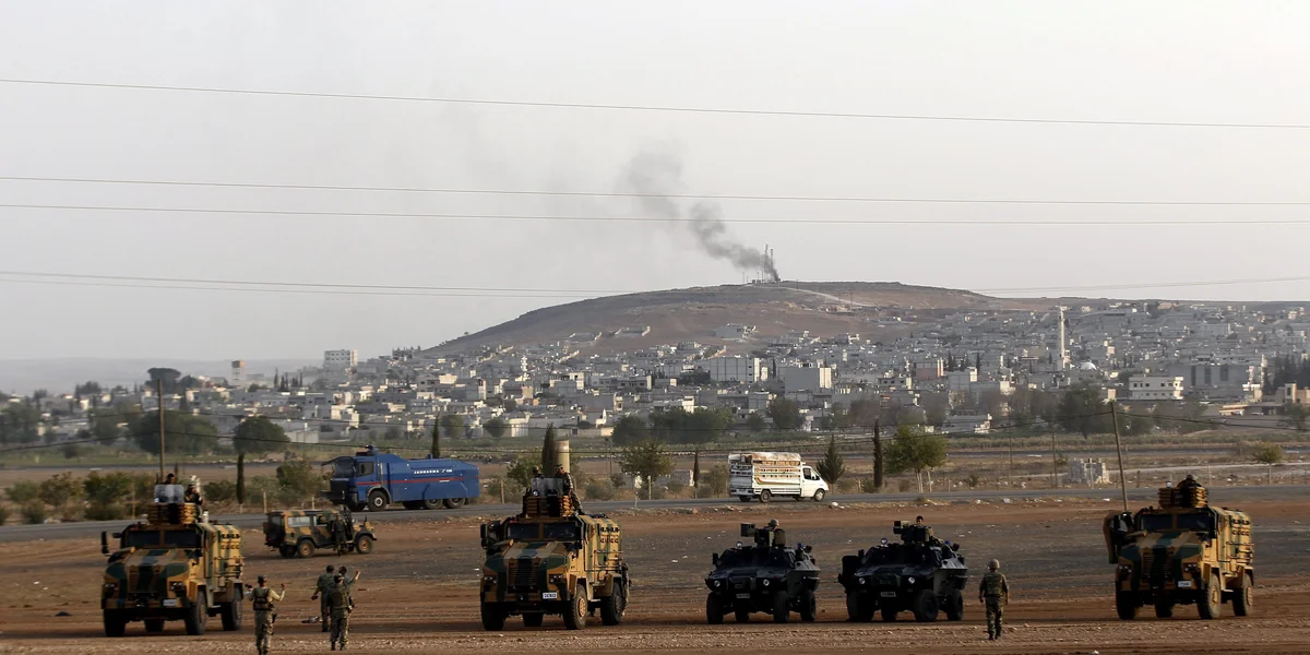 In einem türkischen Dorf an der Grenze wurden Augenzeugen zufolge mindestens fünf Menschen durch Querschläger der Kämpfe in Syrien verletzt. Die Türkei hat bislang nicht in die Kämpfe eingegriffen, obwohl das Parlament in Ankara gerade erst grünes Licht für Militäreinsätze gegen den IS gegeben hat.