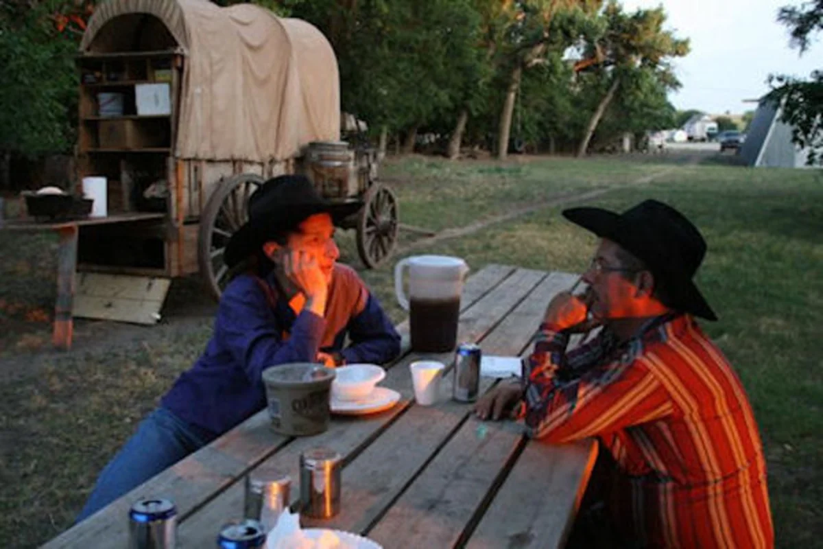 Als rollende Anleihe an die alten Zeiten führen die Moores beim Cattle Drive einen Chuckwagon für Gerät, Zelte und Verpflegung mit. Es ist eines der wenigen Zugeständnisse an verklärte Touristen, denn normalerweise benutzen die Moores ihren Pick-up. „Was immer wir machen, für den Gast ist es eine echte Cowboy-Erfahrung“, sagt Joe. So gehen er und Nancy schlicht ihrem Tagewerk nach und sind dennoch die Animateure. Im Sattel umzingeln sie gemeinsam mit ihrem Sohn und einem Freund die Rinderherde. Sie lassen eine Lücke, die die Richtung weist. So dirigiert, bewegen sich die Wiederkäuer langsam in die angepeilte Richtung.