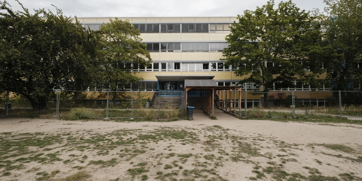 Das Gymnasium am Europasportpark, zwischen Velodrom und Volkspark Friedrichshain gelegen, ist extrem baufällig. In dem Plattenbau aus den 70er Jahren sind bereits Fenster aus der Fassade gefallen, weshalb ein Bauzaun Schüler*innen und Lehrkräfte auf Sicherheitsabstand zum Gebäude hält. Die Luftqualität in den Unterrichtsräumen ist erdrückend schlecht: Bei einem taz-Besuch vor einigen Wochen ließ sich in vielen Räumen aus Sicherheitsgründen kaum noch ein Fenster öffnen. Sie frage sich „jeden Morgen, ob ich die Schule noch aufschließen kann“, hatte Schulleiterin Katrin Schäffer der taz gesagt.