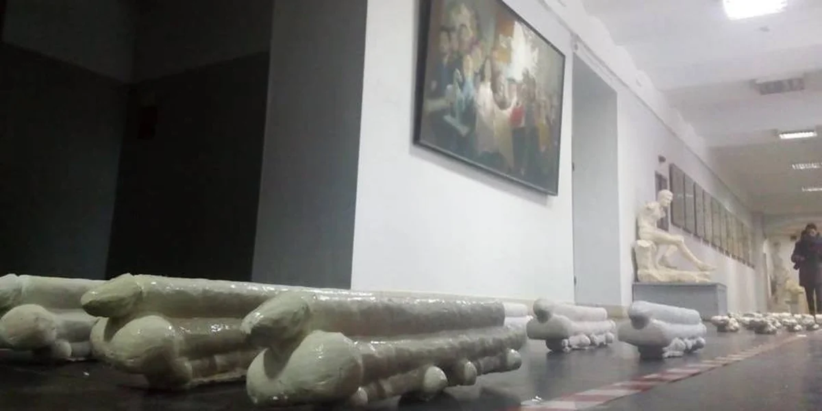 Mit der Exmatrikulation hat der Konflikt zwischen dem Künstler und der Kiewer Kunstakademie einen neuen Höhepunkt erreicht. Studierende, Dozenten und Besucher staunten nicht schlecht, als sie am 19. Januar den Korridor der Kiewer Kunstakademie betraten. Einige Dutzend weiße Gipsfiguren standen aufgestellt in Reih und Glied zu einer Miniatur-Militärparade. Das Besondere: Sowohl die Soldaten als auch die Raketen auf den Lastwagen hatten alle die Form eines Phallus.