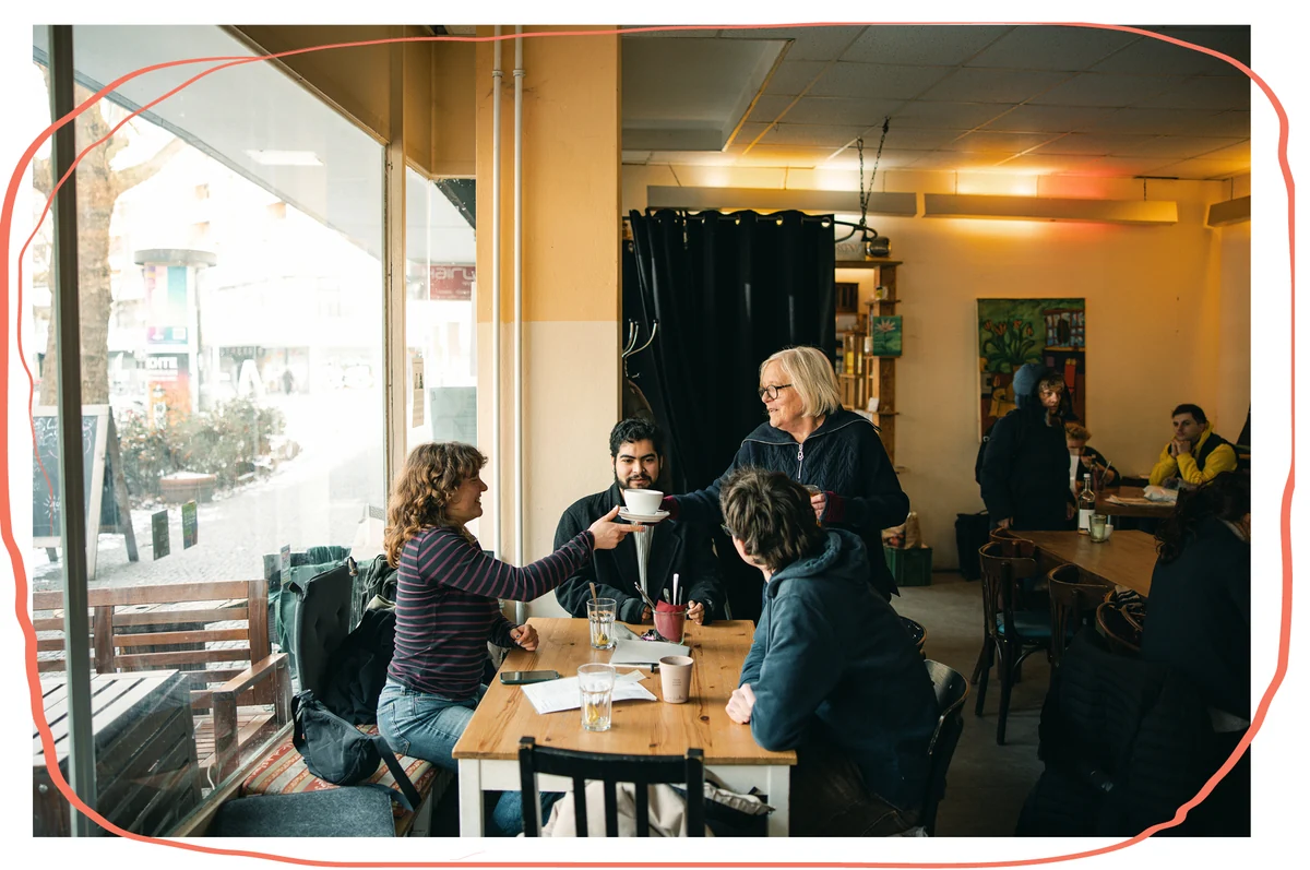 Und dann fällt ihr Constanza Moreira ein. Eine Frau, die Karin aus einem ganz anderen Leben kennt. Damals, vor rund 40 Jahren, war Karin zum ersten Mal in Uruguay – später hat sie sogar eine Tango-Bar in der Hauptstadt Montevideo eröffnet. Erst ging es um politische Projekte. Und dann, in der Bar, wollten sie Räume für Diskussionen schaffen, für soziale Gerechtigkeit einstehen – und natürlich Spaß haben nach Feierabend, mit dem sich idealerweise auch noch Geld verdienen lässt. Dort haben sich auch Moreira und Karin getroffen. „Wir haben viel diskutiert. Aber vor allem viel gemacht“, erzählt sie. Constanza Moreira ging schließlich in die Politik, Karin betreibt das Kiezcafé in Kreuzberg.