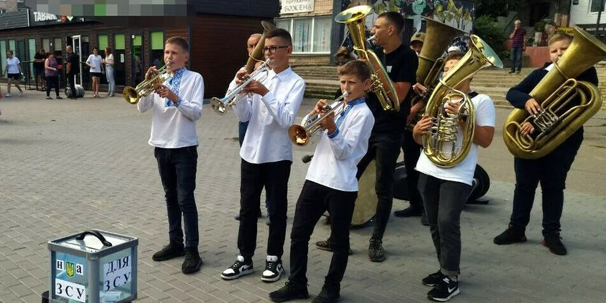 Schüler und Schülerinnen der Musikschule in Luzk treten jeden Tag in der Nähe von Bushaltestellen auf und sammeln so Spenden für die Streitkräfte. Die Konzerte des Orchesters organisiert ihr Lehrer Nikolai Kuriljuk. Er sucht belebte Plätze in der Nähe von Schutzräume, um die Kinder und sich im Fall vor Luftangriffen in Sicherheit bringen zu können. Zwischen sieben und vierzehn junge Musiker*innen kommen für die Auftritte des Blasorchesters zusammen. Für die bislang gesammelten 70.000 Hrywni (etwa 1.870 Euro) haben die Jugendlichen Periskope für die Schützengräben gekauft.