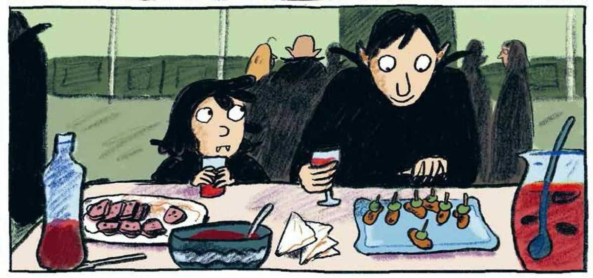 Ein bisschen erinnert Karlas strenge Mutter in schwarzem Gewand an Morticia aus der Fernsehserie „The Addams Family“. Mit dem ersten Fangzahn ist für Walpurga nun der Zeitpunkt gekommen, um ihre Tochter endlich auf die traditionsreiche Vampir-Akademie zu schicken. Doch Karla möchte die Freundschaften zu den vertrauten Mitschüler*Innen nicht aufgeben, nicht zuletzt, weil sie sich neuerdings sehr gut mit der schüchternen Mila versteht.