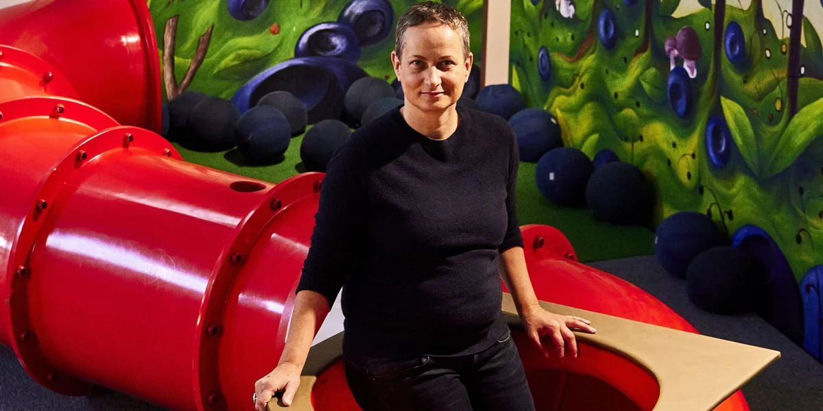 Uta Rinklebe steht in einem dicken roten Industrierohr, wie man es – wenn auch in blasseren Farben – zur Ableitung des Grundwassers aus Berliner Baustellen in die Spree kennt. Hier, im MACHmit! Museum für Kinder im Stadtteil Prenzlauer Berg, dürfen Kinder durch das aufgesägte Rohr schlüpfen, um sich am anderen Ende inmitten überdimensionierter Stoffheidelbeeren wie Elsa Beskows geschrumpfter „Lasse im Blaubeerland“ zu fühlen. „Eigentlich gehen die meisten Geschichten von Kindern erst los, wenn die Eltern zu Hause bleiben, verschwinden, arbeiten gehen oder sogar sterben“, sagt Museumsleiterin Rinklebe über den Raum mit den Heidelbeeren und den angrenzenden Raum, wo sich alles um den Tod dreht.