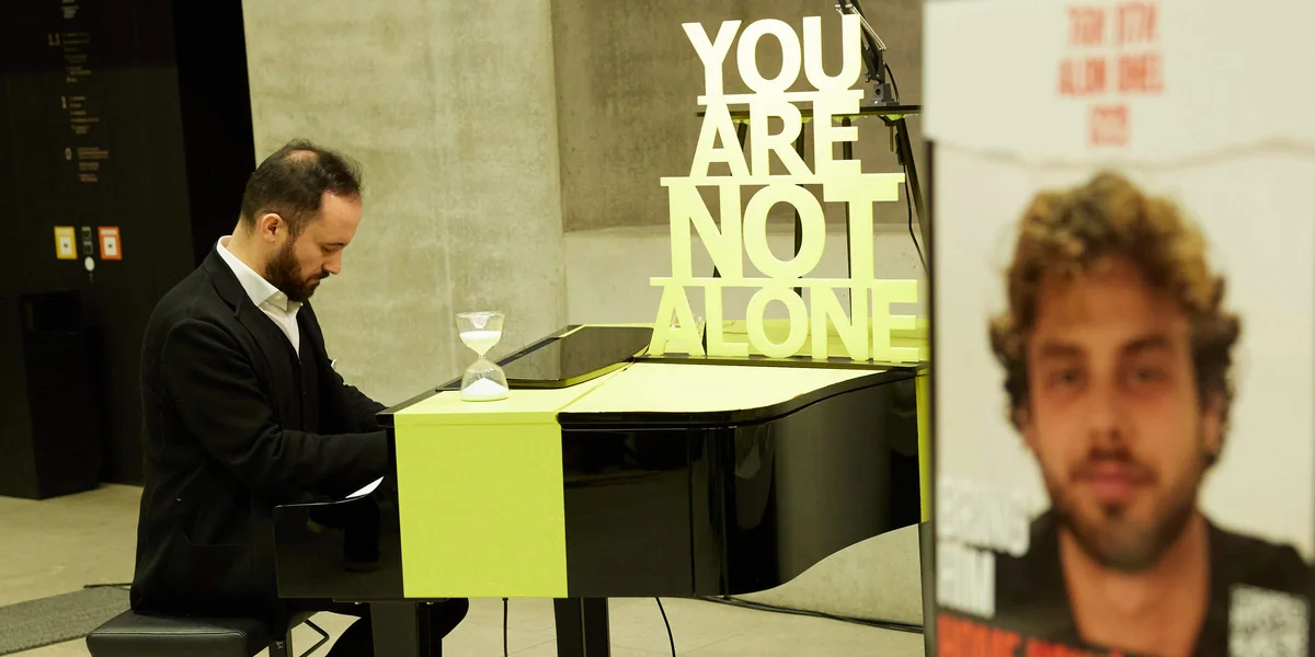 Am Schluss, das Konzert ist beendet und alle Reden sind gesprochen, geht der Pianist Igor Levit auf die Frau mit den langen blonden Haaren zu. Beide umarmen sich. Das Publikum applaudiert. Auf dem Klavier hinter ihnen steht, beleuchtet und unübersehbar in gelber Schrift: „You are not alone“, Du bis nicht allein.