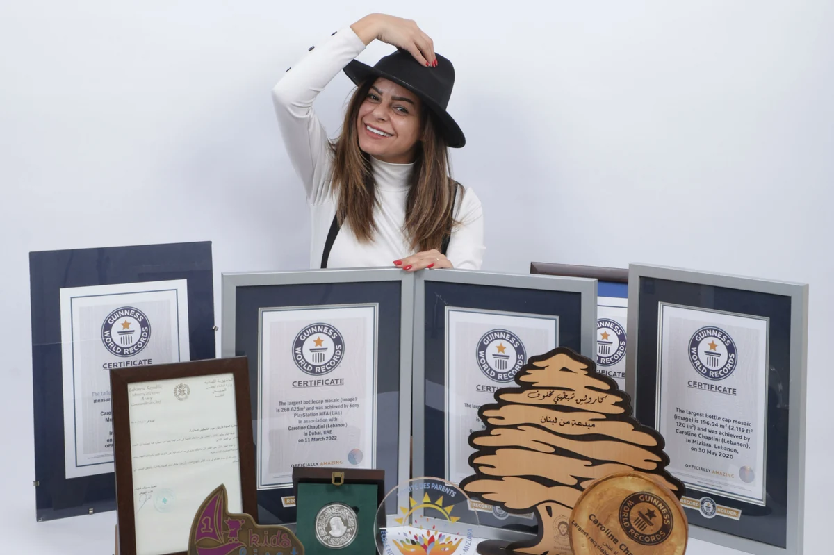Recycling-Künstlerin, die fünf Guinness-Weltrekorde für Umweltprojekte hält, bei denen Tonnen von Abfall und Plastikflaschen in großformatige Kunstinstallationen verwandelt werden