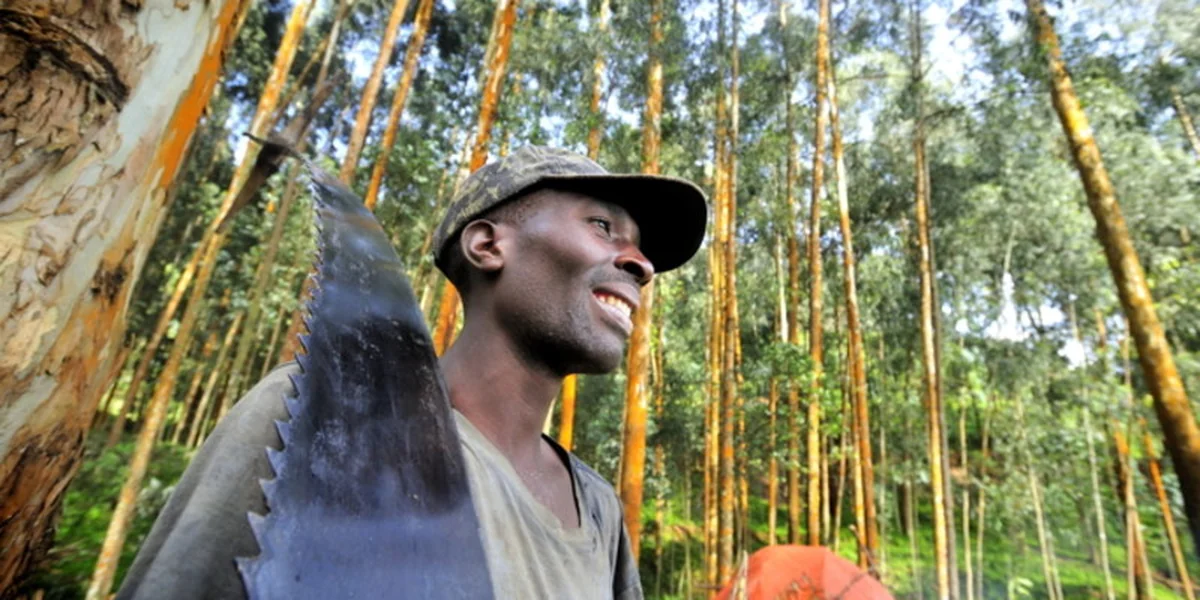 RUANDA/UGANDA/KONGO taz | Mit einem mannsgroßen Sägeblatt halbiert der Holzfäller einen Baumstamm. Zentimeter für Zentimeter dringen die Zacken ins Holz ein. Vorarbeiter Silvestre Bariyanga steht daneben und gibt Anweisungen: Die Maße der Holzscheite müssen exakt stimmen. "Wir beliefern damit Möbelmacher", erklärt Bariyanga und zeigt auf den Stapel neben ihm. Was einst ein Wald war, wird hier zu Bauholz zusammengehackt. Doch immerhin, Bariyanga zeigt ein Dokument von der lokalen Umweltbehörde: "Wir brauchen für jeden Baum eine Lizenz", erklärt er.