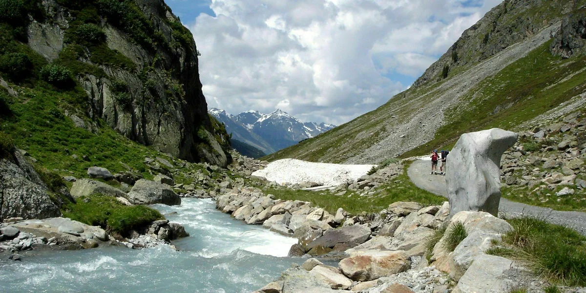 Riesige Felsbrocken krachen mit lautem Getöse auf den Gletscher – nur wenig entfernt von unserer Wandergruppe. Manche Steine sind teils einige Meter groß und würden jeden Menschen erschlagen, den sie treffen. Immer mehr Geröll breitet sich minutenlang auf dem als Sulztalferner bekannten Gletscher in den österreichischen Alpen aus. Wie ein Lavastrom arbeitet sich das grauschwarze Band von einer eisfreien Bergspitze oberhalb des Gletschers Richtung Tal. Die Wucht dieses Gröllabgangs, sein gewaltiger Lärm, seine Dauer flößen Respekt und manchen auch Angst ein. Zum Glück ist über unserer Seite des Gletschers kein Fels ohne Eisdecke.