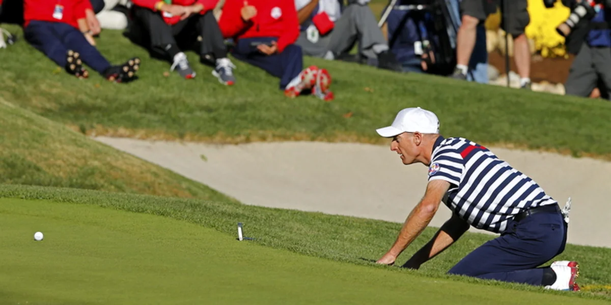 Martin Kaymer, der zuletzt so schwächelnde deutsche Golfer, hatte erneut nicht gut gespielt. Am Freitagmittag hatte er sein Doppel (mit Justin Rose) hergegeben und wurde dann erst gar nicht mehr eingesetzt. Auch jetzt, in seinem Duell gegen den US-Amerikaner Steve Stricker, versagte er zum Ende hin per Wasserschlag und einem einfachem Fehlput. Aber er war noch im Spiel, weil auch beim US-Routinier die Nerven bebten. Und es stand 13:13. Kaymer hatte diesen einen kleinen allerletzten Put für sein Team aus zwei Metern vor sich. Auf dem letzten Grün.