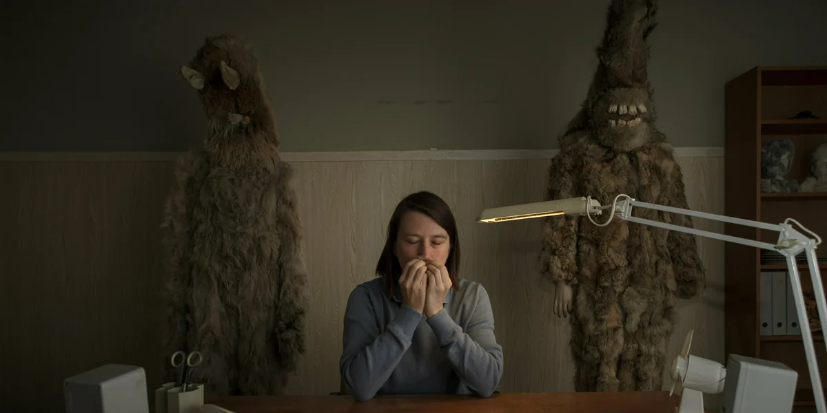 Von fern tönen schiefe Blockflöten, laute Schreie und auch mal ein Vogelruf. Im Anwendungsraum „dunkler Wald“, unter tief hängenden Ästen, ausgestopften Vögeln und bröselndem Laub, wähnt man sich am Ziel. Doch dort weint Sandra (Signa Köstler) so bitterlich um ihren Geliebten Ewald und ist es so unfassbar dunkel, dass man den als Schwarzbären kostümierten Performer erst wahrnimmt, als dieser direkt vor einem steht.