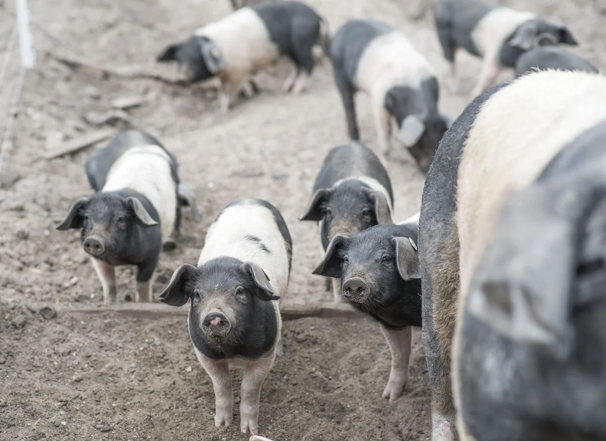 Auf dem Weg zu den Freilandschweinen sagt Markus Poland: „Ich will, dass die Menschen ihr Essen von Anfang bis Ende in der Hand haben. Nichts wird besser, wenn es erst durch Deutschland oder halb Europa transportiert wird.“