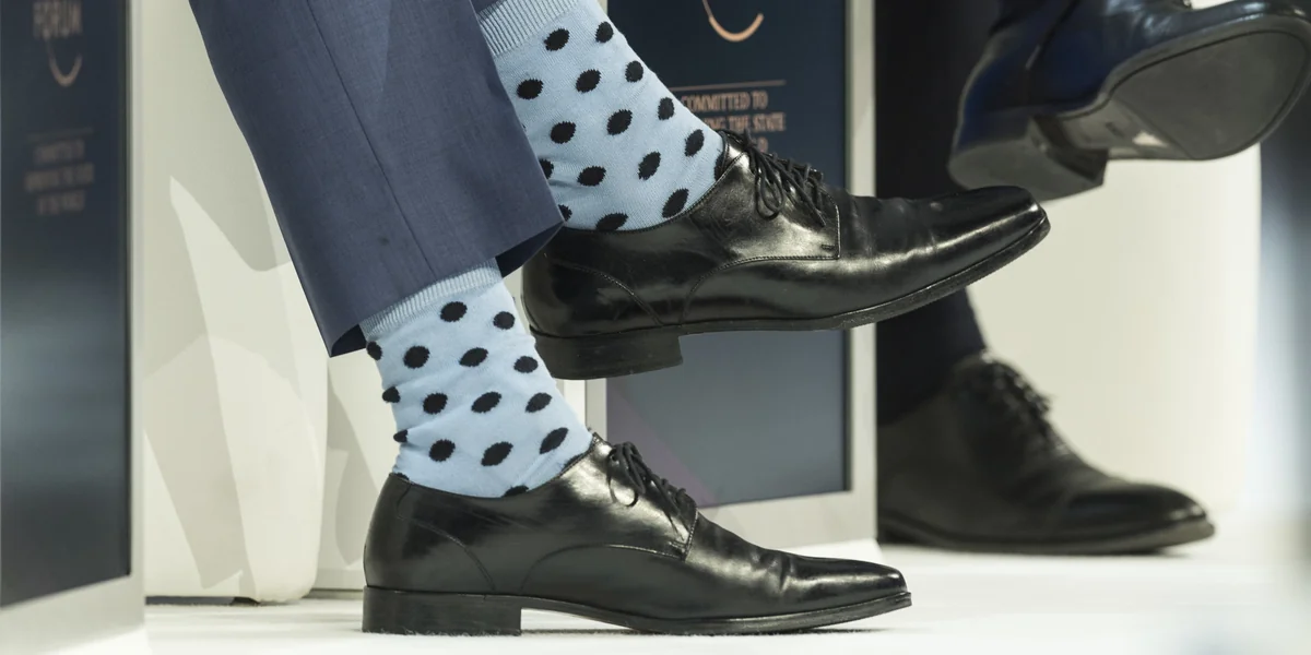 Der Redakteur trägt Stiefel