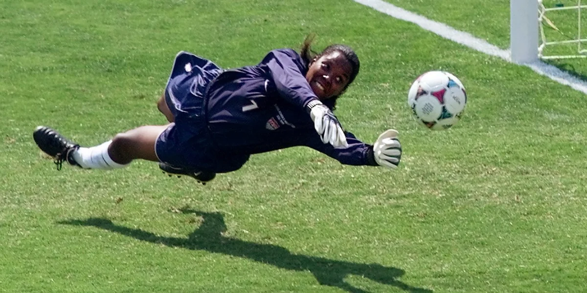 Auch hier kommen die meisten Besucher aus den USA. Sie sind sehr fachkundig. „Das ist der entscheidende Elfmeter!“, erklärt einer seiner Frau, als die Szene zu sehen ist, in der die Chinesin Liu Ying im Elfmeterschießen des Endspiels der WM 1999 anläuft, schießt und verzweifelt, als US-Keeperin Briana Scurry ihren Schuss abwehrt. Dabei steht diese fast zwei Meter vor der Linie. „Hey, Dad!“, sagt da ein Mädchen aufgeregt zu seinem Vater. Seine schnelle Antwort: „Ich weiß.“