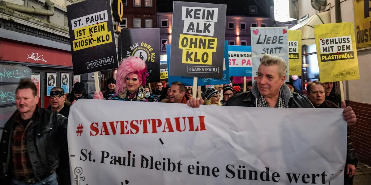 Es gab also eine Demonstration in Hamburg, die kein geringeres Ziel hatte, als St. Pauli zu retten. Retterinitiativen sind in Hamburg momentan sehr beliebt. Wer wollte nicht irgendwas oder irgendwen retten? Bedroht ist nicht etwa das Geschäft der Clubbetreiber, wie man vielleicht meinen könnte, sondern die kulturelle Vielfalt, wie der Demo-Mitorganisator, Axel Strehlitz, das ausdrückt. Man müsste nur den Kiosken das Bier wegnehmen, dann würden die Corner-Menschen wieder ihr Bier im Club kaufen, und St. Pauli wäre gerettet, die kulturelle Vielfalt auch.