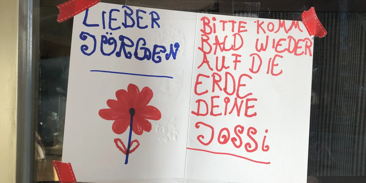 O b Jürgen das wusste? Was Jossi schreibt. In wackligen Buchstaben, mit Filzstift fest aufgedrückt: „Lieber Jürgen, Bitte komm bald wieder auf die Erde, Deine Jossi.“ Und ob Jürgen das wusste? „Jürgen, ich bin sehr traurig, dass Du nicht mehr da bist. Es ist sehr langweilig ohne Dich. Deine Büsra.“ Daneben auf dem Blatt hat jemand mit Kuli dazu gequetscht: „Danke Jürgen, du hast mich groß erzogen und meine vier Kinder. Gottes Segen sei mit Dir mein Engel. Dein Ahmet.“