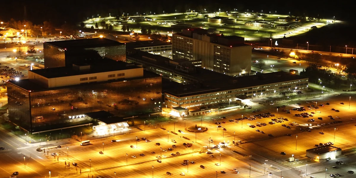 Die NSA-Zentrale in Fort Meade, im Hintergrund das EU-Parlament. Bild: dpa