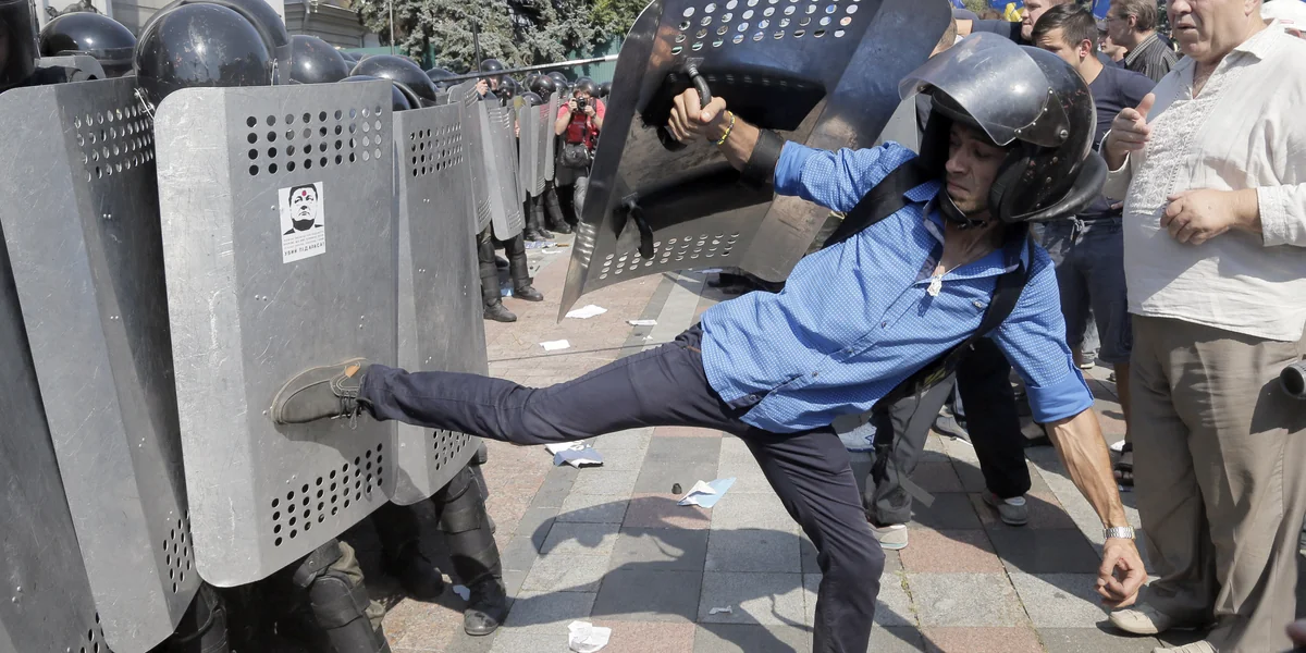 Denn mit ihnen könnte eine zweite Front eröffnet worden sein, die mitten durch die ukrainische Hauptstadt verläuft. Es ist schon bemerkenswert, wenn Regierungschef Arseni Jazenjuk in einer ersten Reaktion auf die Ausschreitungen zu Protokoll gibt, dass die Demonstranten „schlimmer“ seien als die „von Russland unterstützten Kämpfer“ in der Ostukraine. Er hätte schon vorher wissen können, dass radikale Nationalisten wie Oleg Ljaschko nicht kleinlich sind, wenn es darum geht, ihre politischen Ziele durchzusetzen.