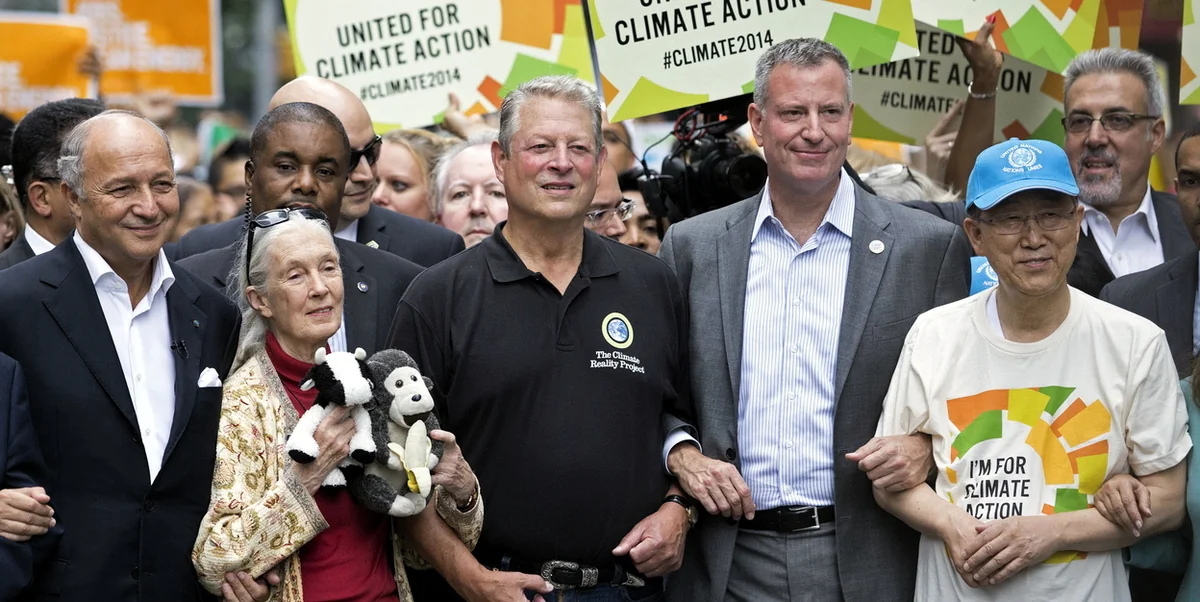 Gleichzeitig hat der Gipfel auch die Industrie herausgefordert, sich wieder mit dem Zombie-Thema Klimawandel zu beschäftigen. Natürlich sitzen die Spin Doctors der Ölkonzerne, der Autobauer und Agrarindustrie in den New Yorker Hinterzimmern dabei, wenn die Politiker reden. Aber die Kluft zwischen den Industrien, die vom Klimaschutz profitieren und denen, die solange wie möglich den Planeten toasten wollen, wird immer deutlicher.