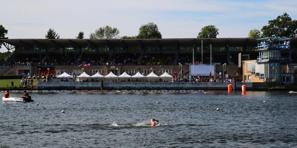 Denn statt diese Wettkämpfe im offenen Wasser in die Innenstadt zu holen, die Sportler um die Museumsinsel oder durchs Regierungsviertel kraulen zu lassen, dümpeln sie janz weit draußen in Grünau vor sich hin, vor schwach besetzten Rängen.