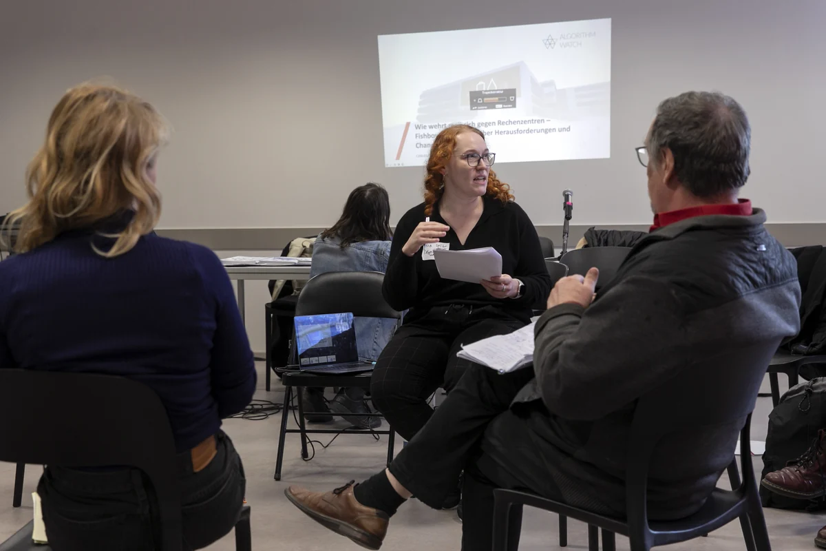 Wie lässt sich der Rechenzentren-Boom aufhalten? Teilnehmer:innen auf der Anti-Big-Tech-Konferenz Cables of Resistance suchen nach Antworten.