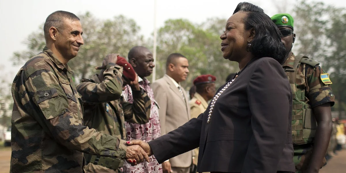 Nach ihrer Rede verließ Samba-Panza das Gelände der Verwaltungsakademie ENA, wo die Zeremonie stattgefunden hatte, durch ein Spalier ihrer Armee.