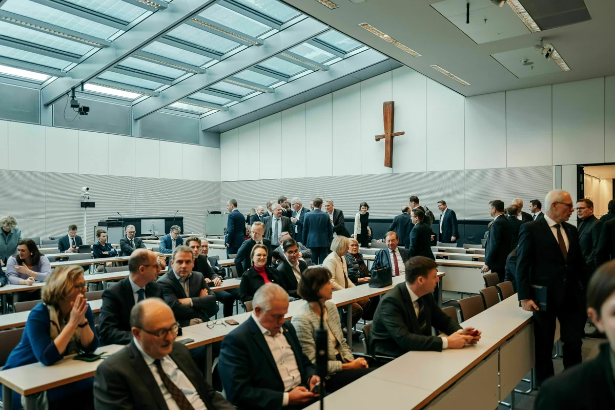 Zumindest das Kreuz an der Wand ist christlich: Blick in den Fraktionssaal der CDU/CSU Ende Januar Foto: Jens Gyarmaty/laif