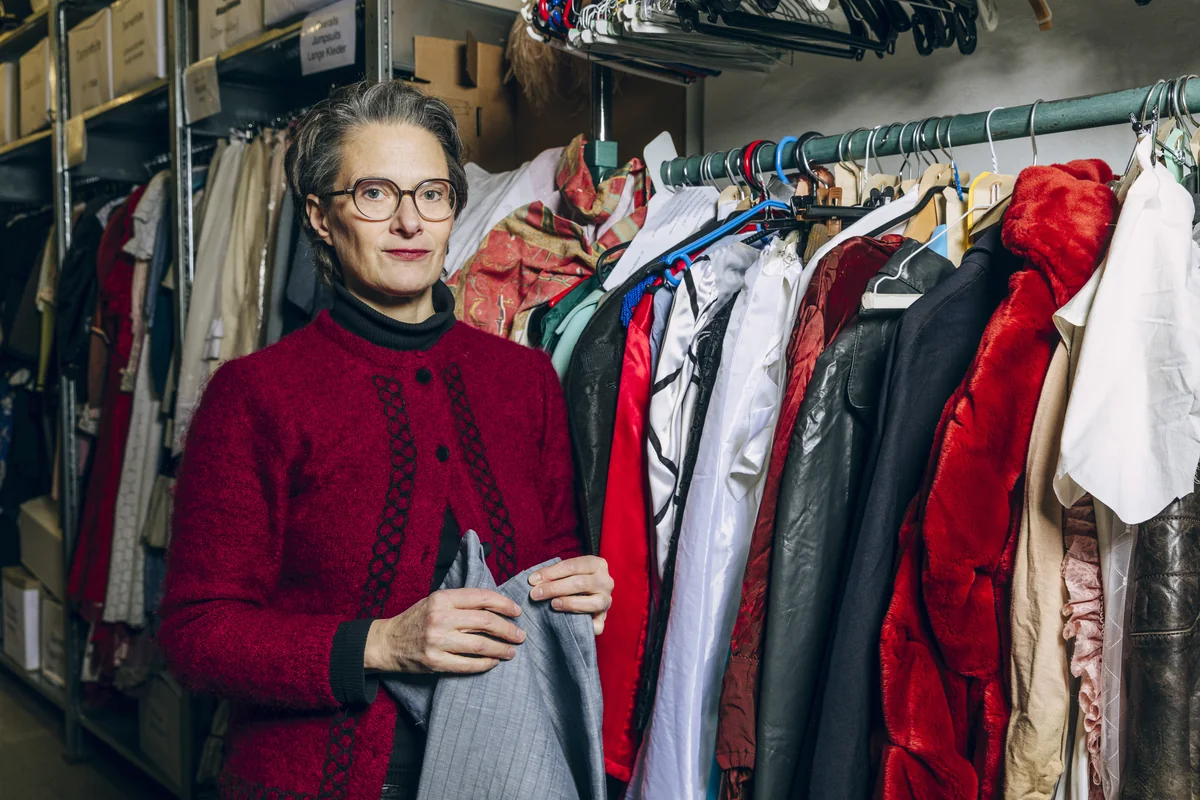Das Flunderkostüm ist eines von rund 50.000 Kostümen, die dort hängen. Sie stammen aus alten Produktionen oder dem aufgelösten Fundus von Kunstschaffenden oder Theatergruppen. Sorgfältig repariert, katalogisiert und etikettiert warten sie an langen Kleiderstangen und in deckenhohen Regalen darauf, kreativ genutzt zu werden. Bei Muriel Nestler im Fundus des Kostümkollektivs ist fast alles zu finden: von der Rokoko-Krause über die Priesterrobe bis zum Astronautenanzug – alles da.