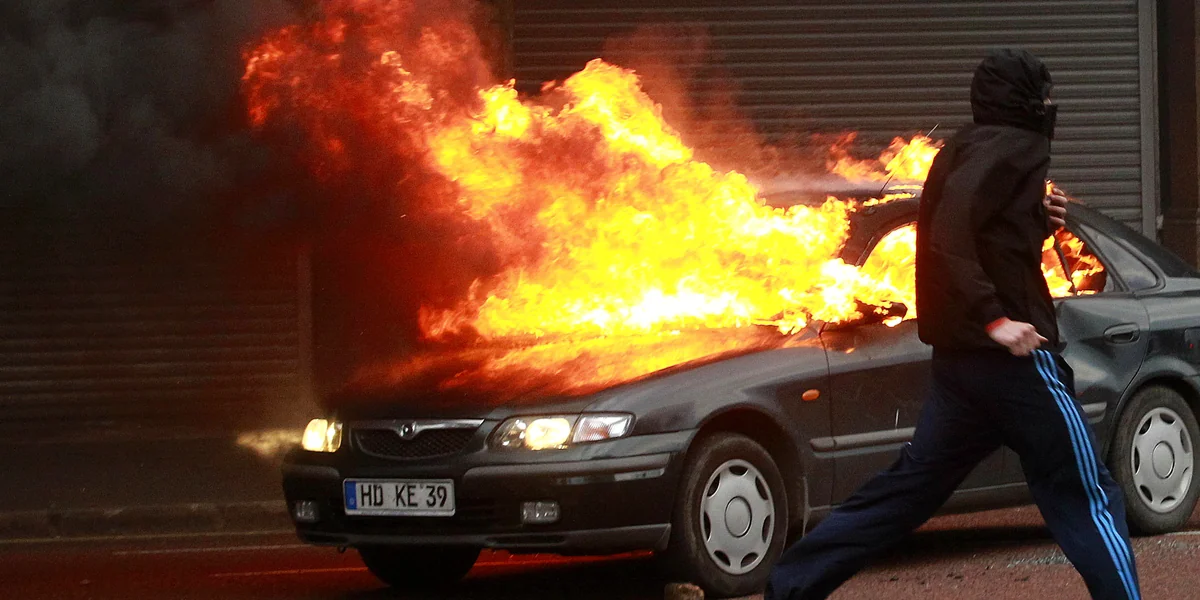 Mehrere parkende Autos wurden bei den Krawallen in der Nacht zum Samstag in Brand gesteckt. Die Polizei setzte Wasserwerfer ein und feuerte Gummigeschosse ab, um die Randalierer zu vertreiben. „Diese Personen hatten nie die Absicht, friedlich aufzumarschieren. Ihnen mangelt es an Respekt, auch sich selbst gegenüber, und an Würde“, sagte Baggott.