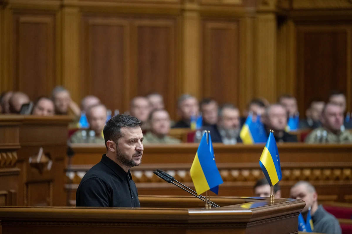 Nach wochenlanger Diskussion gibt der ukrainische Präsident Selenskyj seinen sogenannten Siegesplan im Parlament in Kyjiw bekannt.