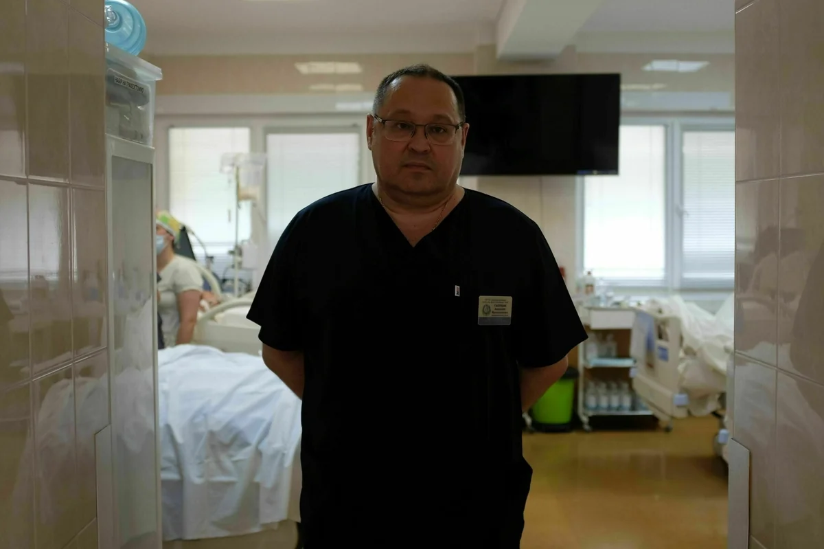 Auf der Intensivstation beendet Anatoli Jaroslawowitsch, ein Mann mit dunkelblauem Arztkittel und traurigen Augen, gerade seine Schicht. Bevor er von seinem Tag erzählt, setzt er in klassisch ukrainisch ironischer Manier an: „Unsere Freunde sind heute schwer damit beschäftigt, dass alle in dieser Stadt leiden.“ Die Freunde, das sind die Russen.