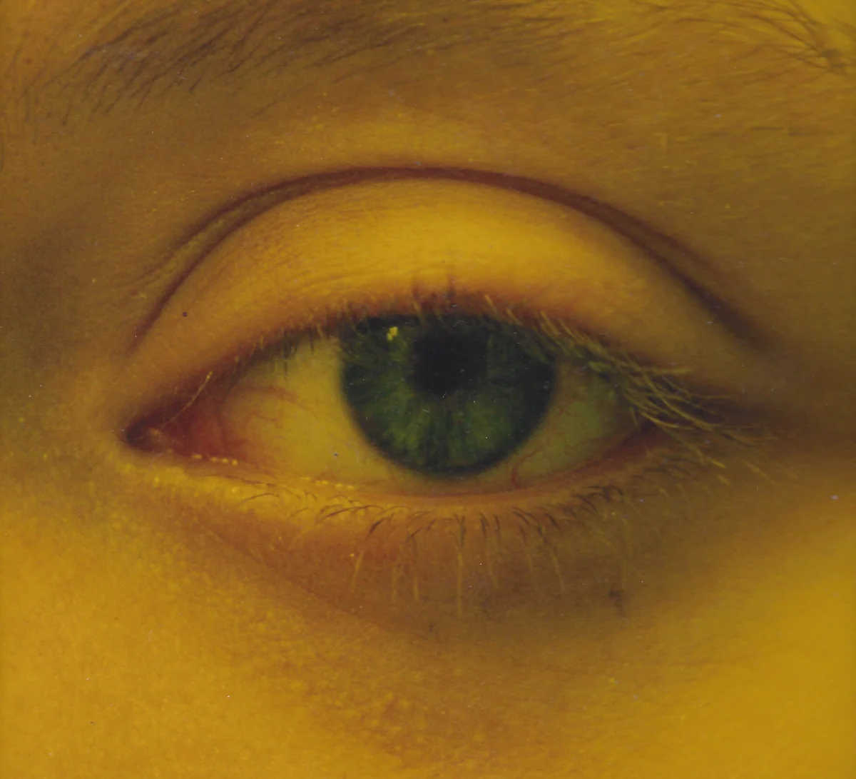 Es korrespondiert zum Beispiel mit dem Gelb, in dem ihre 1998 fotografierten „Augen“ leuchten. Diese Fotoserie ist immer in Paaren gehängt: Ein Auge geöffnet, eins geschlossen. Licht und Schatten – keins von beidem ist für sie positiv oder negativ besetzt, das eine bedingt das andere.