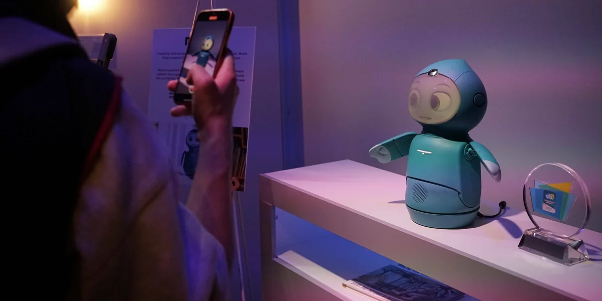 Moxie soll Kinder zum Spielen anregen, und auch zum Zähneputzen. Klein und rundlich ist er, der Körperbau erinnert ein wenig an R2-D2, dazu kommt ein drehbarer Kopf mit Bildschirmgesicht und großen Kulleraugen. Ansonsten ist Moxie nicht besonders beweglich, er kann nur den Oberkörper nach vorne lehnen und mit seinen kleinen Ärmchen wackeln. Dafür guckt er interessiert, erzählt und stellt Fragen, denn in Moxie steckt eine Sprach-KI, die mit einer ähnlichen Software läuft wie ChatGPT. Und Moxie ist aufmerksam, wie Videos von Moxie-Besitzer:innen zeigen – so aufmerksam, dass es manchen Menschen etwas unangenehm wird. In einem sagt Moxie etwa: „Oh wow, ich hab gerade gesehen, dass du einen coolen Rucksack trägst. Was ist da drin?“ Moxies Gegenüber findet das „scary“, gruselig.