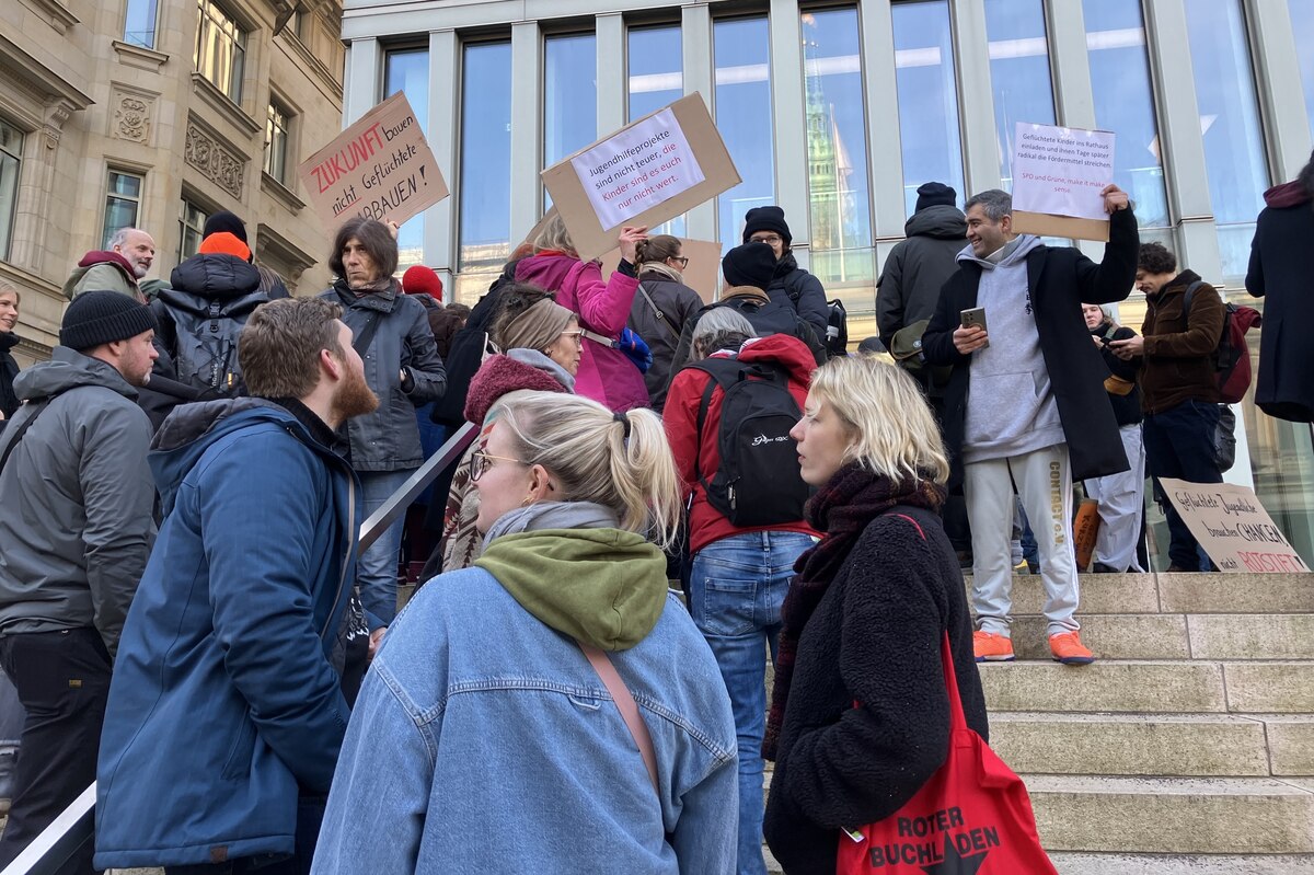 Doch etwa 50 Zuschauende aus der OKJA ärgerte der Vortrag der Senatsbank so sehr, dass sie den Saal verließen und noch „Eure Lügen ohne uns!“ skandierten. Träger mussten wegen der Kürzung sehr kurzfristig Leute entlassen. Auch ist die Senats-Argumentation fachlich fraglich. Denn gerade das mehrjährige Aufwachsen von Kindern in Sammelunterkunften gilt als belastend. Sprich: Je länger Kinder in so einer Ausnahmesituation ohne die Privatsphäre einer familiären Wohnung leben, desto höher ist eigentlich der Bedarf an Freizeitangeboten außerhalb dieser Unterkünfte.