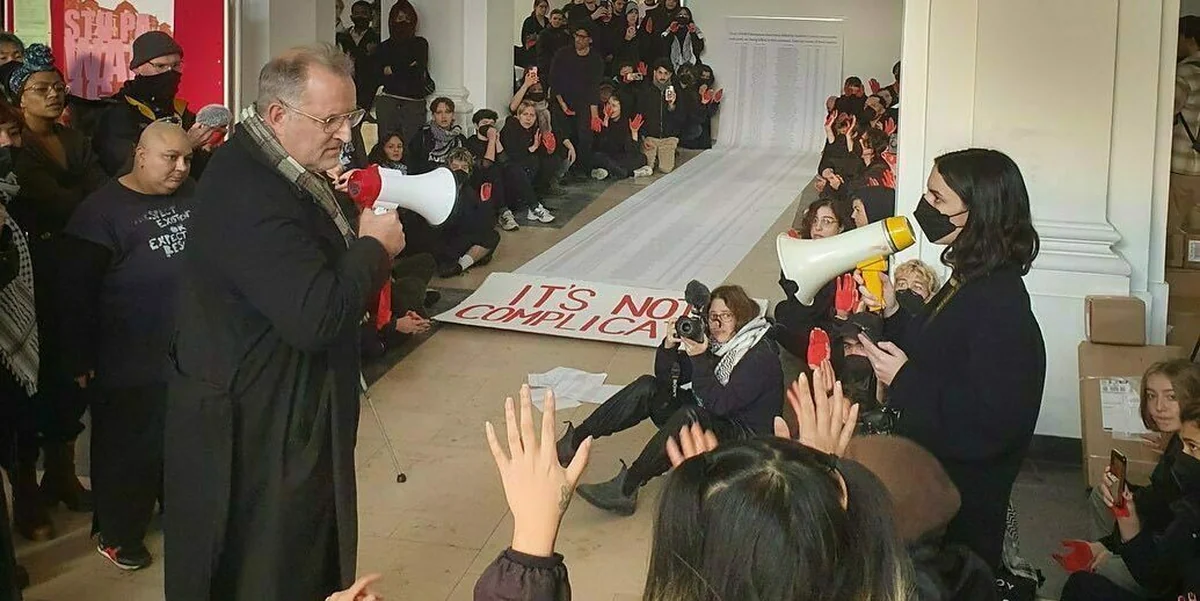 Eine Aktion vom 13. November brachte der UdK bundesweite Schlagzeilen. Rund 100 Studierende hatten das Foyer des Hauptgebäudes besetzt und ihre Hände rot eingefärbt. Einige interpretierten das als eine Anspielung auf das Foto eines Lynchmords an zwei Israelis in der West Bank.