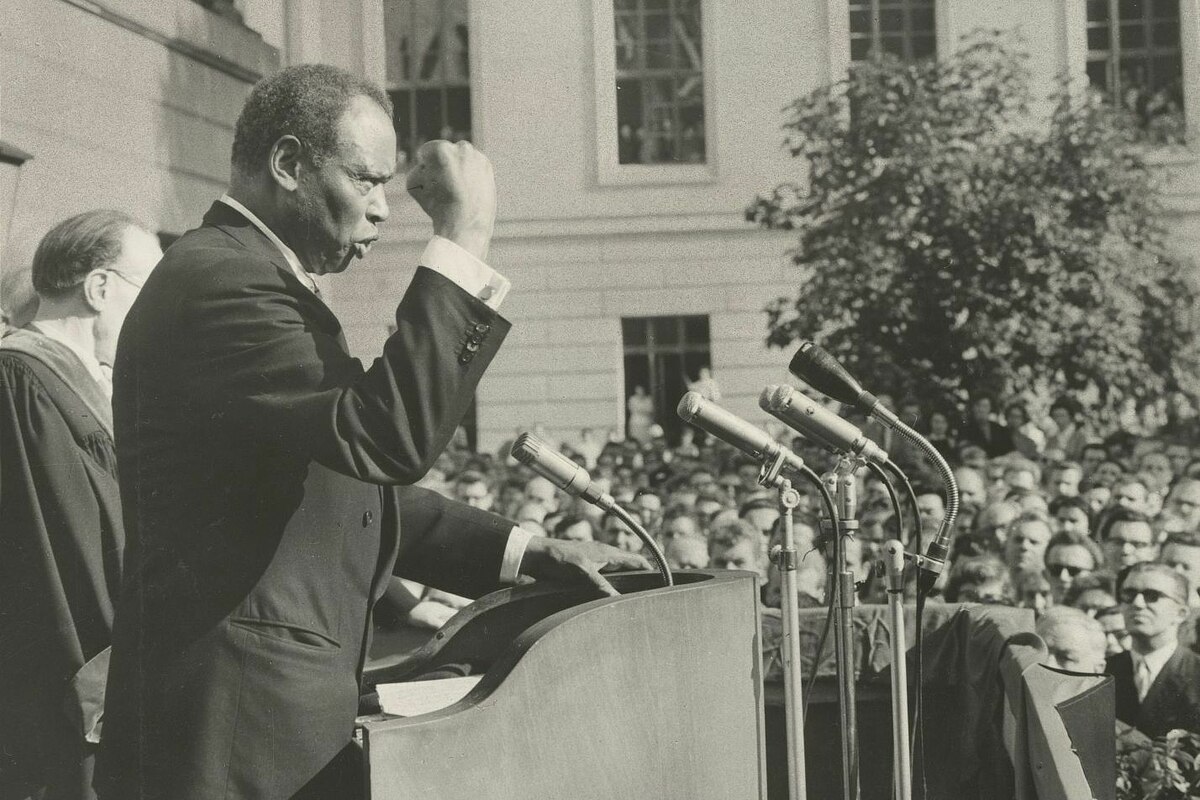 Paul Robeson bei einer Rede im Vorhof der Humboldt-Universität zu Berlin am 5. Oktober 1960 Foto: Horst Sturm/Akademie der Künste/Paul-Robeson-Archiv/Zentralbild