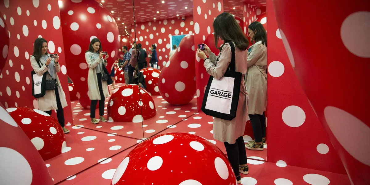Auf den 4.000 Quadratmetern Ausstellungsfläche ist der tschechische Konzeptkünstler Julius Koller mit einer Fotoschau vertreten, die japanische Künstlerin Yayoi Kusama mit den Installationen „Dots Obsession“ und „Infinity Theory“ und Katharina Grosse mit einem begehbaren Gemälde. Die Garage zeigt auch die weltweit größte Sammlung des kaum erforschten russischen Untergrunds seit den 50er Jahren – einen Eindruck bekommt man durch ein gutes Dutzend dadaistischer Fotos von George Kiesewalter. Die ursprüngliche Idee des Museums war es, internationale Kunst in Russland zu zeigen. Nun, nach der Wiedereröffnung, will man laut Selbstdarstellung die russische Kunst international etablieren. Ob das aber realistisch ist? Wohl eher nicht.