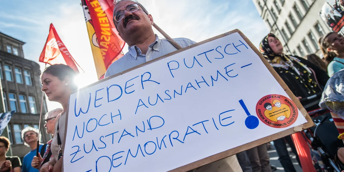 Eine Woche zuvor hatten Teile des türkischen Militärs gegen die Regierung geputscht, waren jedoch gescheitert. Seither greift die türkische Regierung nicht nur gegen die Putschisten mit aller Härte durch. Staatspräsident Recep Tayyip Erdoğan steht in der Kritik, den vereitelten Putsch für die eigene Machterweiterung zu instrumentalisieren und Oppositionelle zu bekämpfen: Über 50. 000 Angestellte im öffentlichen Dienst wurden seither entlassen, viele von ihnen verhaftet. Am Donnerstag verkündete die Regierung den Ausnahmezustand.