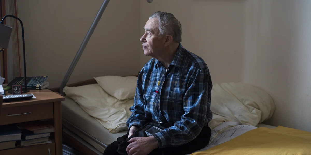 Ich habe alles gearbeitet. In Fabriken. Alles. Bei Siemens war ich viel. Akkord, ne? Es hat angefangen mit Halsschmerzen, so einen dicken Hals hatte ich. Dann bin ich in die Klinik, und sie haben festgestellt: Krebs, hat schon gestreut, also zu spät. Was für ein Krebs, weiß ich nicht, also von Kopf bis Fuß. Das ist jetzt erst anderthalb Jahre her. Ich konnte nicht mehr allein leben, bin paarmal zusammengefallen, fast tot. Ach, ich weiß nicht, ich hab mich so damit abgefunden. Ich habe einfach überlegt: Und nun? Was machst du jetzt? Was kann passieren? Ja, nix. Außer dass du die Augen zutust, viele Schmerzen hast, kann nix passieren. Oder aber ich gehe da hin, wo man mir hilft, wo ich keine Schmerzen habe und ich friedlich einschlafen kann. In ein Heim wollte ich nicht. Da gammelt man vor sich hin. Hier ist das noch würdemäßig, hier ist alles sauber, das ist wie meine kleine Wohnung, finde ich. Ein Vierteljahr bin ich jetzt hier.