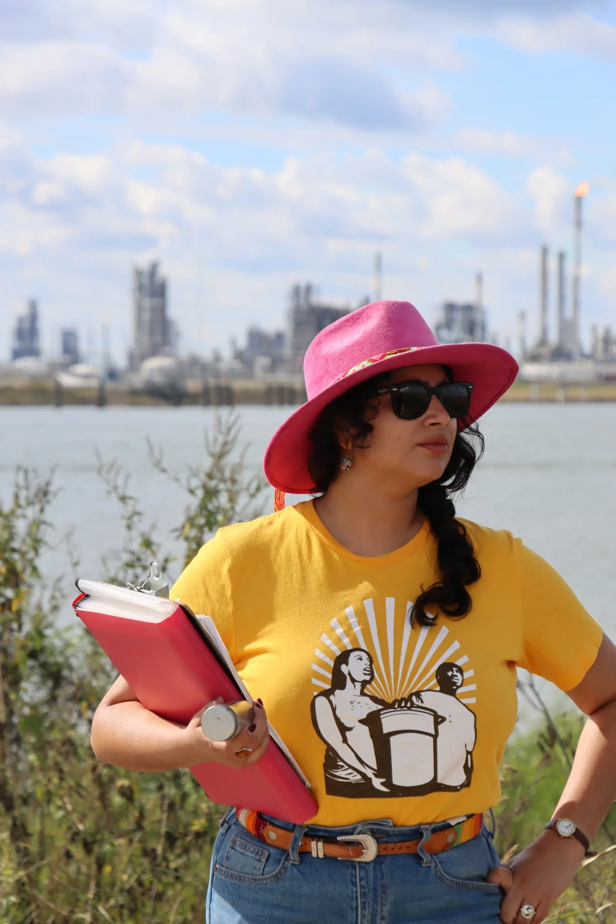 Eine halbe Stunde Autofahrt von New Orleans entfernt liegt Norco, eine kleine Gemeinde am Mississippi-Fluss. Sheila Tahir ist Mitglied der Louisiana Bucket Brigade, einer Nichtregierungsorganisation, die sich der Umweltzerstörung durch die Öl- und Gasindustrie im Bundesstaat entgegen stellt. Mit einem bunten Cowboyhut und einer großen Sonnenbrille gegen die Mittagssonne bewehrt steht Tahir auf einer großen Grasfläche, auf der noch schemenhaft die Spuren ehemaliger Behausungen zu sehen sind.