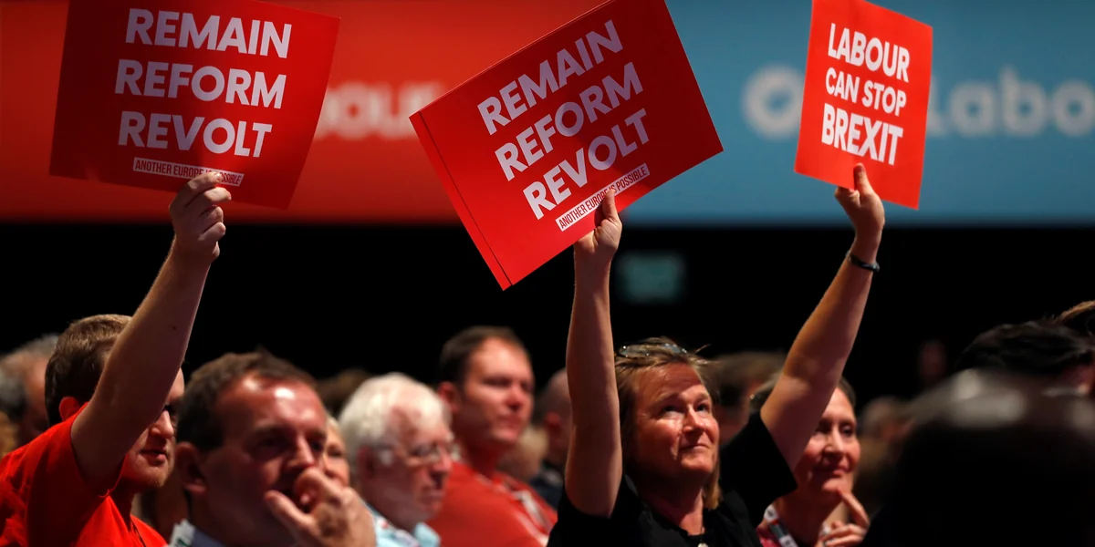 In der Mittagspause wurden vor dem Kongresszentrum in der südenglischen Seestadt Brighton noch rote Schilder verteilt, mit „Labour Can Stop Brexit“ in großen weißen Buchstaben. Zahlreiche Delegierte nahmen diese enthusiastisch entgegen, um am Nachmittag mit ihnen im Konferenzsaal der britischen Labour-Partei zu wedeln.