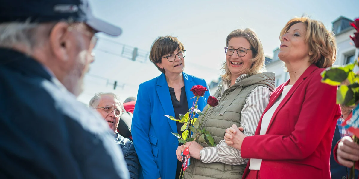 „Das Saarland hat Rot gewählt, nach 23 Jahren ist die SPD wieder stärkste Partei im Saarland“, ruft die künftige Ministerpräsidentin ihren GenossInnen zu. „Wir haben uns das Vertrauen zurückerkämpft“, so Rehlinger unter großem Jubel. Mit dem Ergebnis vom Sonntag toppt die saarländische SPD sogar ihren Erfolg vor sechs Monaten, als sie der CDU alle vier Bundestagswahlkreise abnehmen konnte.