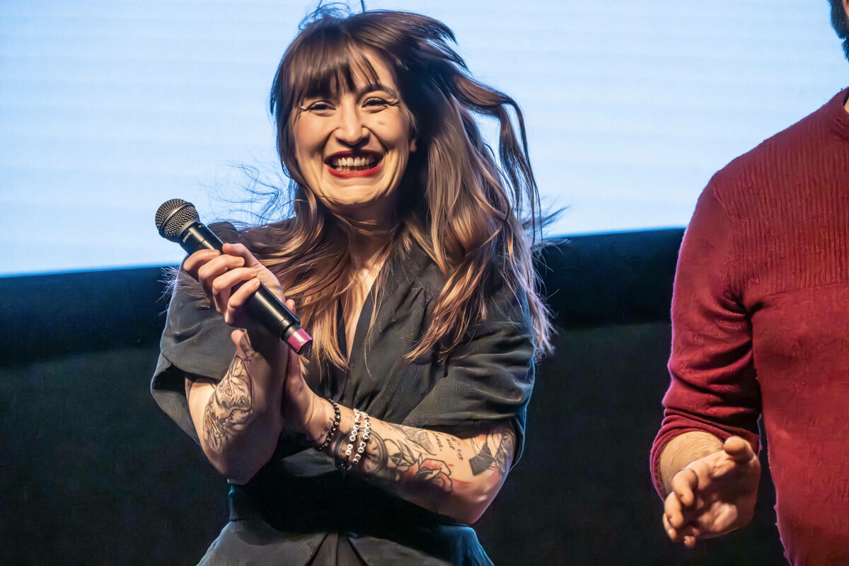 Dieser Erfolg, auch im Südwesten, geht wesentlich auf das Konto von Heidi Reichinnek, die mit ihrem viral gegangenen Brandmauer-Rant im Bundestag die unerwartete Wiederauferstehung der Linkspartei mit eingeleitet hat. Und so läuft sie dann zum Höhepunkt der Veranstaltung ein, mitten durch das Publikum, von ihrem Social-Media-Kamera-Team bestens ausgeleuchtet, und hüpft mit Pantisano zu dem Remix „Zeit, dass sich was dreht“ auf der Bühne herum. Nur ältere Linke hält es da noch auf den Sitzen.