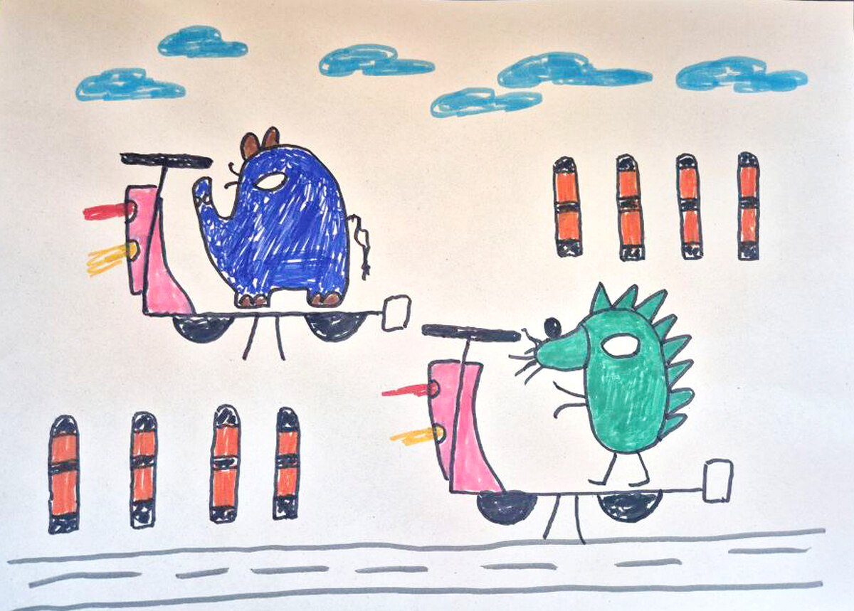 Am Sonntag wird in Baden-Württemberg gewählt. Das Bild hier hab ich schon vor längerem gemalt. Vielleicht ist der grüne Igel hier Cem Özdemir und der blaue Elefant ist der CDU-Kandidat Manuel Hagel. Beide kämpfen darum, wer Ministerpräsident von Baden-Württemberg wird. Momentan fährt der Grüne noch der CDU hinterher. Einer wird am Ende gewinnen. Das entscheiden die Leute, die gewählt haben.