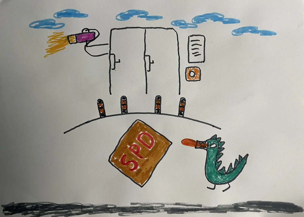 Heute sind die Leute auch enttäuscht von der SPD. Es sind sogar manche Politiker von der SPD zum BSW gewechselt. Das Problem ist: Wenn man in einer Koalition ist, muss man auch Sachen beschließen, die nicht immer gut sind für die Menschen. Das könnte den Grünen, also dem Drachen auf dem Bild, auch passieren. Dann war’s das auch für die. Davor habe ich Angst.