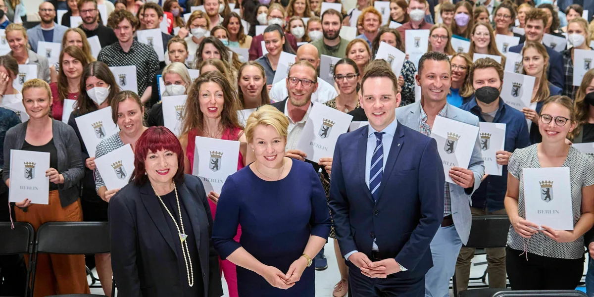Slotty betonte: „Das sind 4.000 Lehrkräfte in dieser Altesspanne zwischen 45 und 52 Jahren, denen wir so noch die Verbeamtung anbieten können, das ist ein enormer Gerechtigkeitsaspekt.“ Bis zum 31. Dezember 2026 soll diese Ausnahme in Berlin gelten, sagte Slotty. „Diese rund vier Jahre werden wir brauchen, alleine um den operativen Prozess der Verbeamtung zu bewerkstelligen.“ Für die notwendige Gesundheitsuntersuchung habe man einen Vertrag mit der Kassenärztlichen Vereinigung in der Schublade: Eine „vierstellige Zahl von Arztpraxen“ stehe dann bereit.