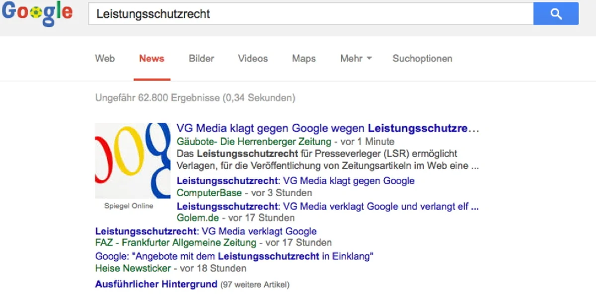 „Wir sind überzeugt, dass unsere Angebote mit dem Leistungsschutzrecht in Einklang stehen“, erklärte Google in einer Reaktion. „Jeder Verlag konnte schon immer selbst entscheiden, ob seine Inhalte über Google-Dienste angezeigt werden oder nicht.“ Die Medienunternehmen hatten sich nach Verabschiedung des Leistungsschutzrechts zunächst damit provisorisch einverstanden erklärt, ihre Inhalte entgeltlos zur Verfügung zu stellen.