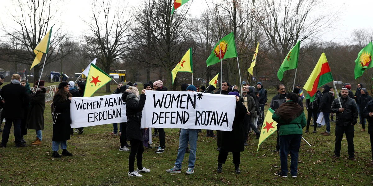 Die kurdischen Organisationen demonstrieren am Sonntag zeitgleich am Kanzleramt. Mehrere Hundert Menschen mit kurdischen Fahnen haben sich auf den Wiesen versammelt. Sie trommeln und singen gegen Erdoğan. Doch der bekommt von alldem nichts mit. Sein Konvoi steuert das Kanzleramt von der anderen Seite an. Die vorbeifahrenden Limousinen sind leer. Auch die Presse macht sich rar.