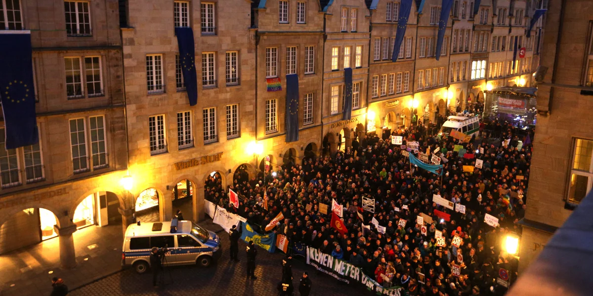 Bei dem Empfang der AfD im Februar 2017 hatten Kaufleute am Prinzipalmarkt die Beleuchtung an ihren Geschäften ausgeschaltet. 8.000 Menschen demonstrierten gegen den Auftritt der Partei. Die Stadt hatte das Licht außen am Historischen Rathaus nicht eingeschaltet. Die Begründung damals: Die Stadt wolle ein einheitliches Bild abgeben.